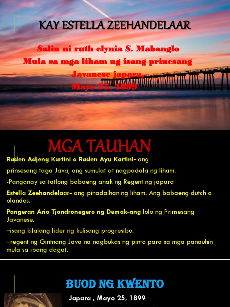 Kay estella zeehandelaar salin ni ruth elynia s. Mabanglo mula sa liham ng isang prinsesang javanese japara mayo 25 1899 panganay sa 3 anak na babae ng regent ng japara may 6 na kapatid na lalaki at babae may lolo na naging kauna unahang regent. Panitikang indonesian mga liham ng prinsesang javanese ni raden adjeng kartini salin ni ruth elynia s.