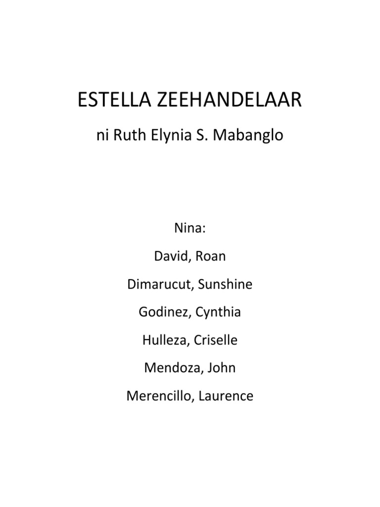 Sino Sino Ang Tauhan Sa Kay Estella Zeehandelaar Brainly Ph